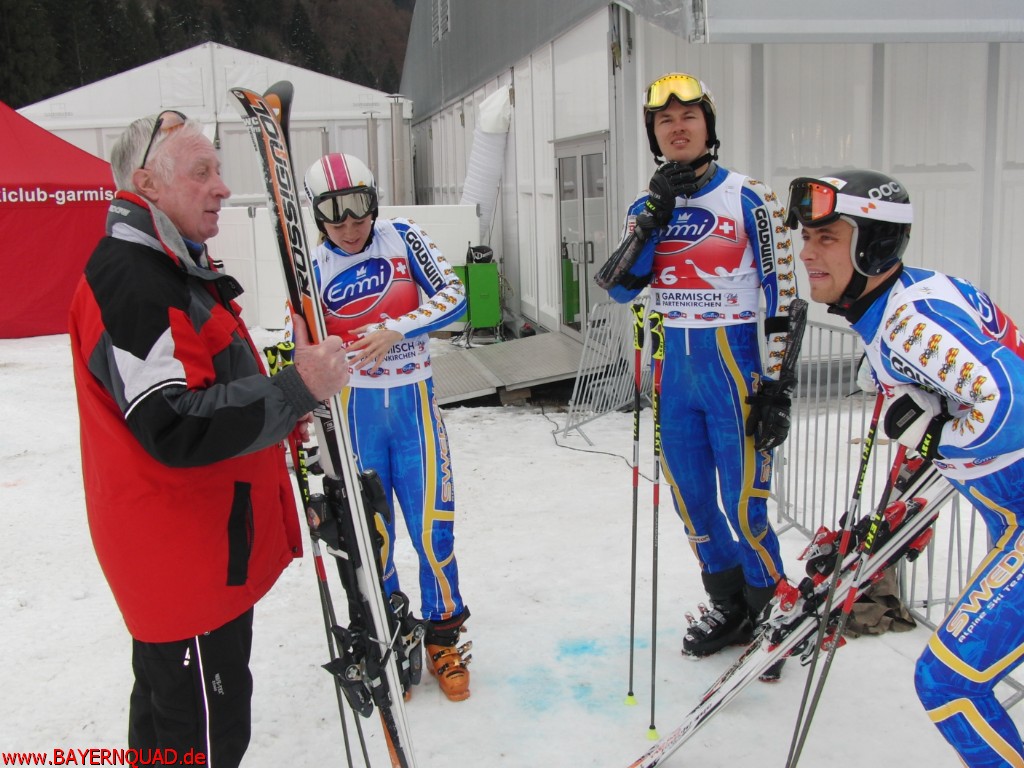 v.l. Jessica Lindell-Vikarby, Andre Myhrer und Hans Olsson (Sweden) mit Heini Zolk, 1. Vorstand des AC Garmisch-Partenkirchen |